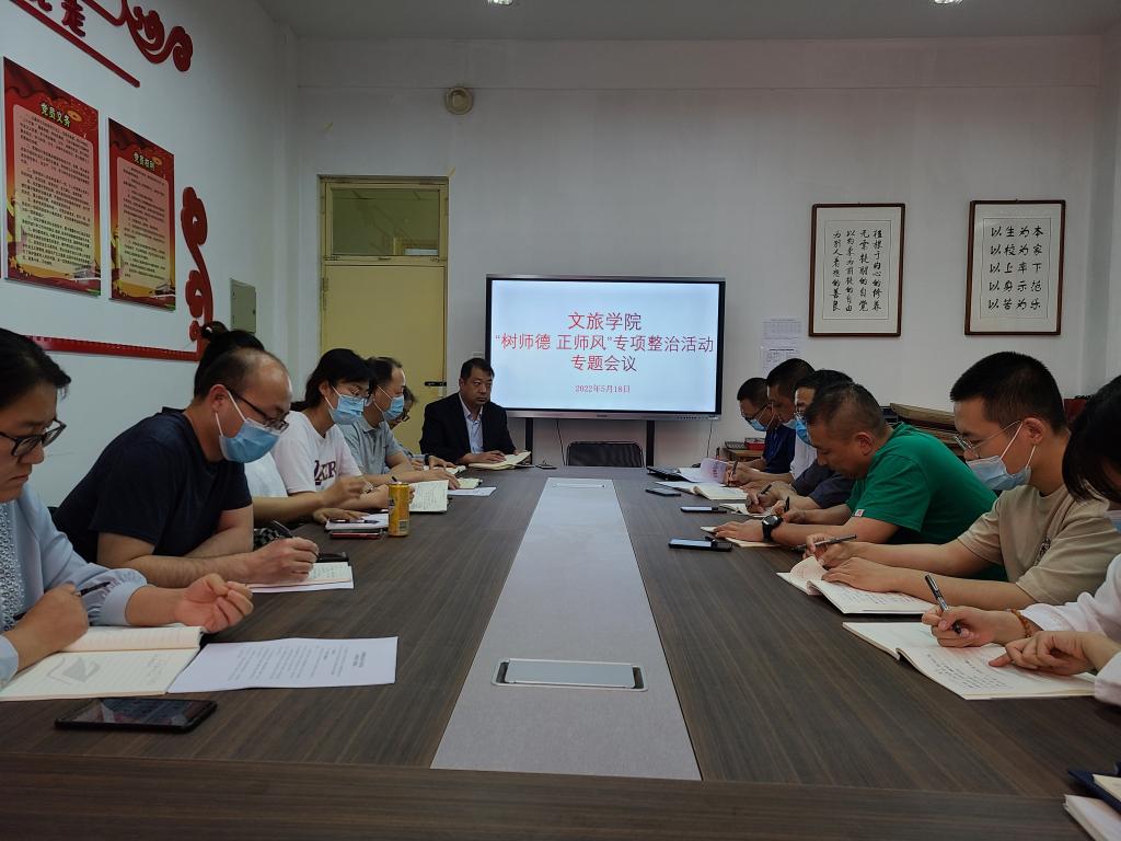 5月18日下午,太阳集团城8722在文信楼党员活动室召开了“树师德 正师风”专项整治活动推进会议,会议由党支部书记于涛主持,学院全体教职工参加。