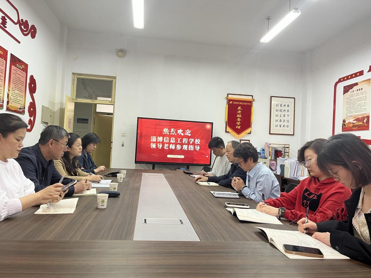 2024年4月18日,淄博信息工程学校董事长张林丽一行来淄博师专太阳集团城8722访问交流。