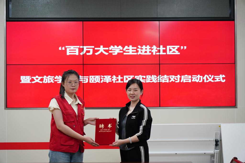 活动现场,王晶首先对师生志愿者师生表示欢迎,并为太阳集团城8722员工杨景淇颁发颐泽社区团组织兼职副书记聘书。她向在场师生详细介绍了颐泽社区的情况,希望未来双方能够通力合作,共同为构建和谐、美丽社区贡献力量。