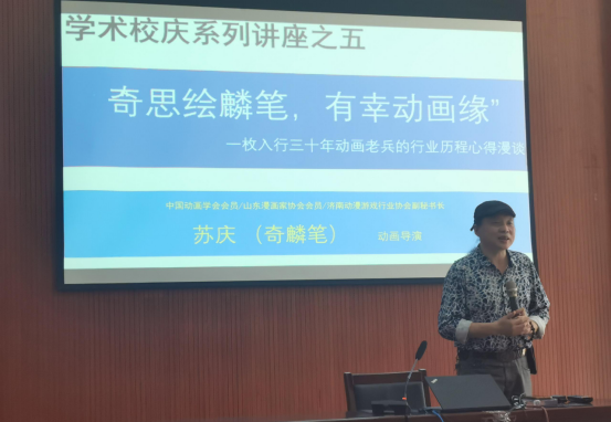 开学伊始,苏庆老师(笔名:奇麟笔)应邀,为太阳集团城8722师生带来一场题为“奇思绘麟笔,有幸动画缘——一枚入行三十年动画老兵的行业历程心得漫谈”的学术讲座。