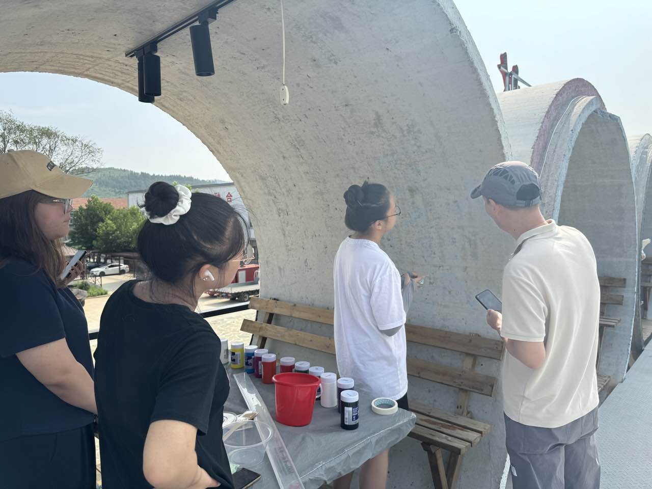 在作画墙壁中,队员们无畏烈日的炙烤,全身心投入到墙绘创作之中。汗水湿透了他们的衣衫,却无法阻挡他们手中画笔的挥动。在这烈日之下,他们用色彩和线条,勾勒出心中的美好愿景。队员们不仅仅是在墙绘,更是在传递一种精神,一种为了梦想不畏艰难、勇往直前的精神。相信在大家的共同努力下,这些水泥管将成为齐艾产业园一道靓丽的风景线。