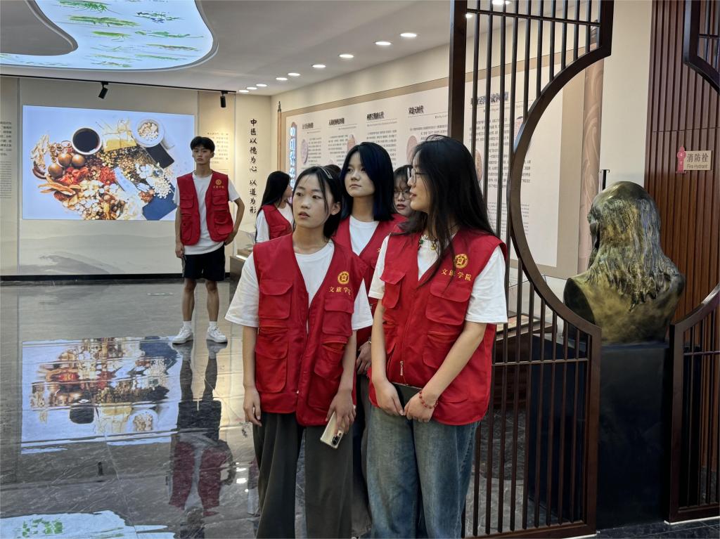 在齐艾中医药养生文化馆中,大型环绕浮雕展开在队员们面前,传“齐”有我志愿服务队的宣讲员向队员们讲述了神医扁鹊齐国行医的故事。各种中医学故事、历史典故也通过展览向队员们展示出来,宣讲员用通俗易懂的语言进行讲解,让队员们更深切地了解到了中医药的起源与发展。