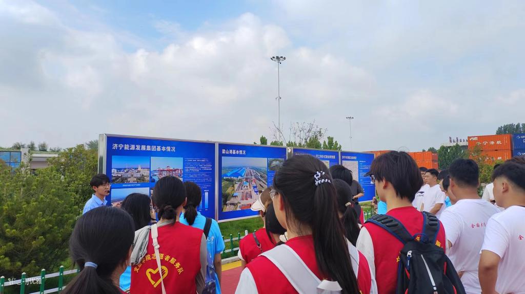 7月19日,服务队队员们踏访了济宁市能源发展集团有限公司旗下的梁山港,这里是一座彰显现代科技与环保理念的能源物流枢纽。队员们深入了解了港口高效运作的各个环节,感受到现代能源物流的强劲脉搏。