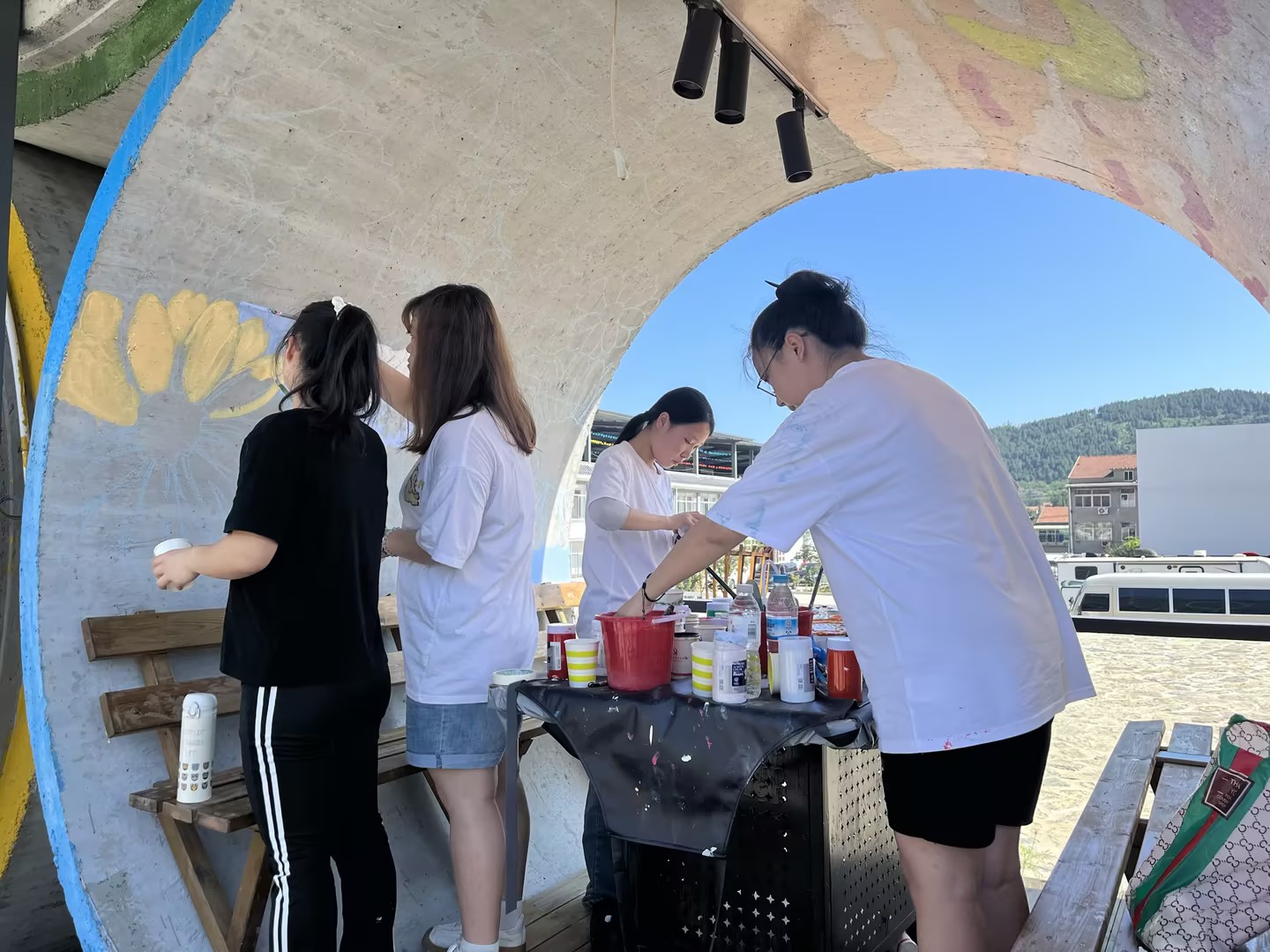 经过前几天的精心创作,墙绘初稿已经初步完成。接下来的几天,队员们将继续对墙绘细节进行打磨,确保每一处色彩都饱满鲜艳,每一个图案都栩栩如生。同时,也会根据游客和当地居民的反馈意见,对部分墙绘进行微调,使其更加贴近当地文化和游客的喜好。队员们也将继续以饱满的热情投入到后续的工作中。
