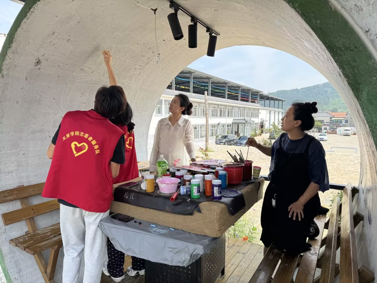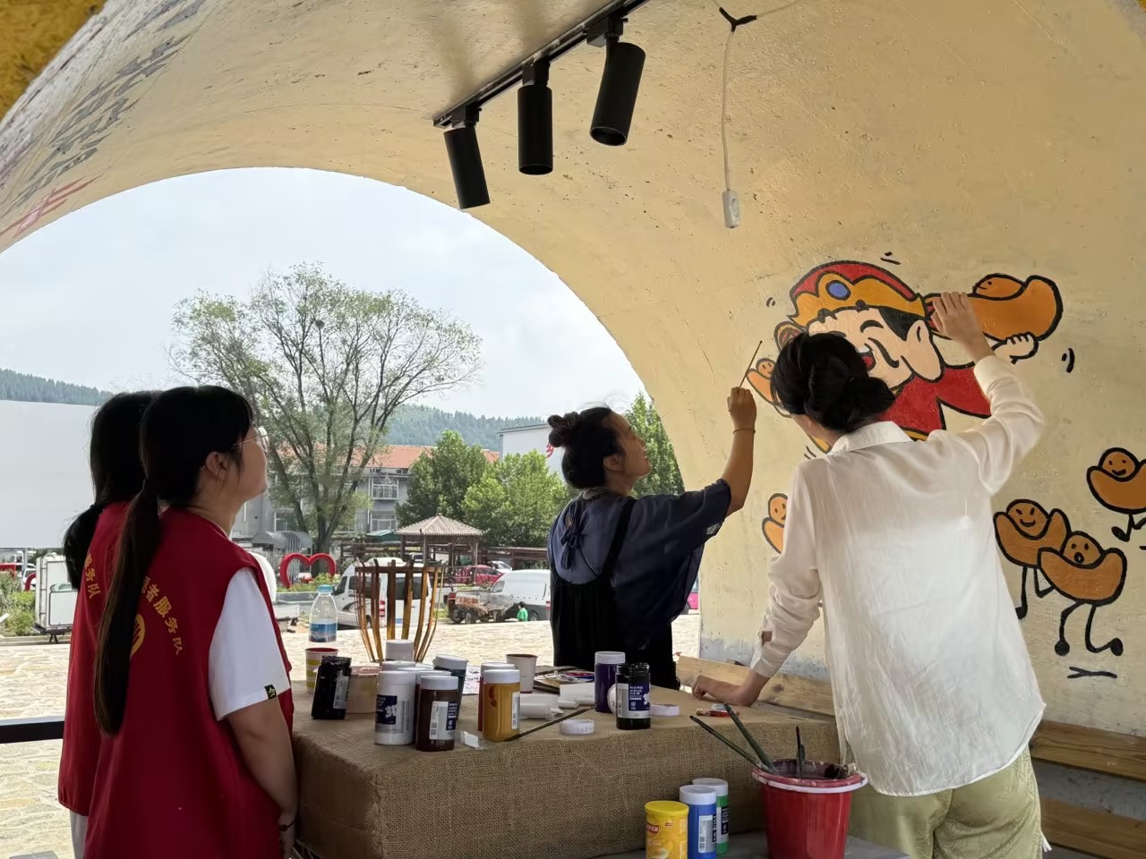 7月21日,队员们经过数日的精心创作与不懈努力,大部分的墙绘已经圆满完工。队员们将墙面视为画布,用手中的画笔勾勒每一个细节,反复打磨,将图案生动地呈现在墙壁之上。每一笔、每一画都包含着队员们对绘画的热爱。