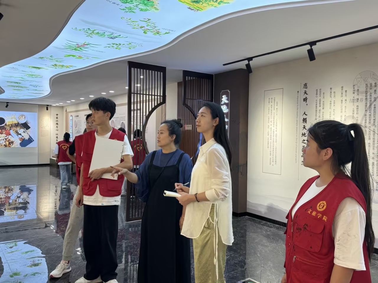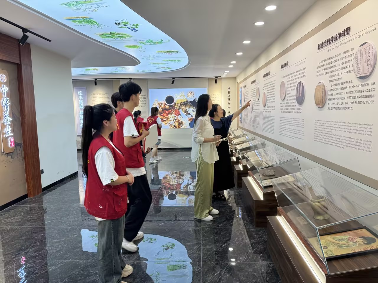 绘画结束后,大家围坐在一起,总结了近期的绘画成果,指导教师根据大家的进度规划了下一阶段的安排。随后,老师与队员们一同参观了中医药养生文化馆,对中医药文化的发展与传承有了更深的体会。