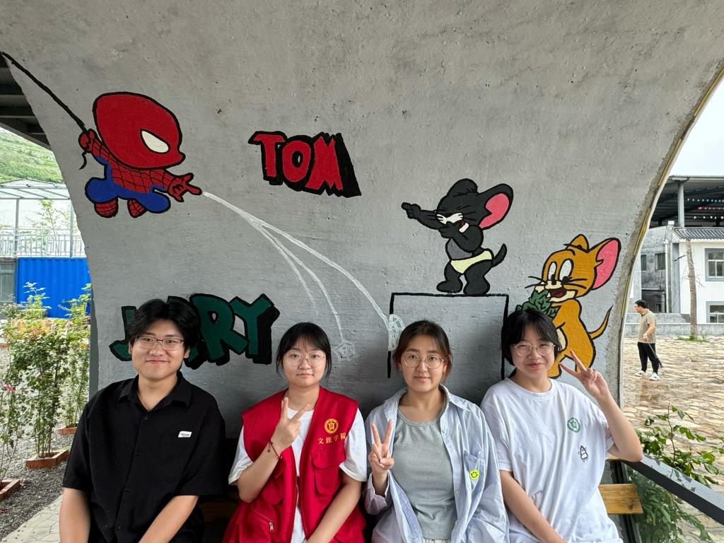 此次“三下乡”墙绘工作,队员们共分为四个小组。小组成员分工明确,各司其职,有的负责勾勒草图,有的负责精心上色,齐心协力完成一幅幅精美的墙绘作品。接下来让我们一起看看第一小组的风采吧。
