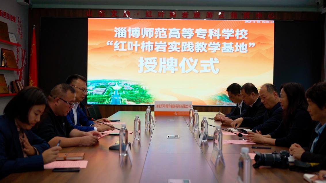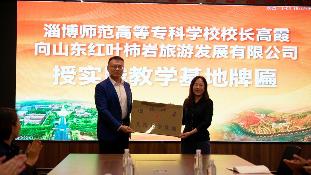 在山东文旅红叶柿岩旅游区,双方签署了实习基地协议书,高霞为实践教学基地授牌,双方就校企合作展开了深入地交流。