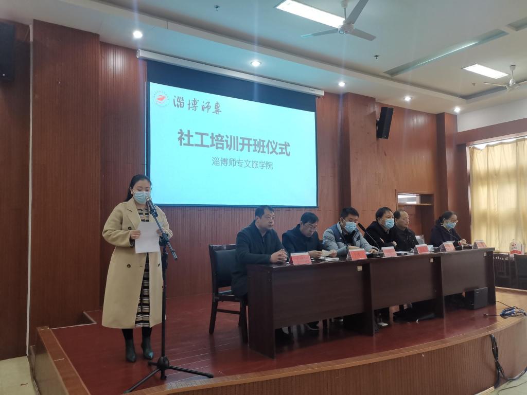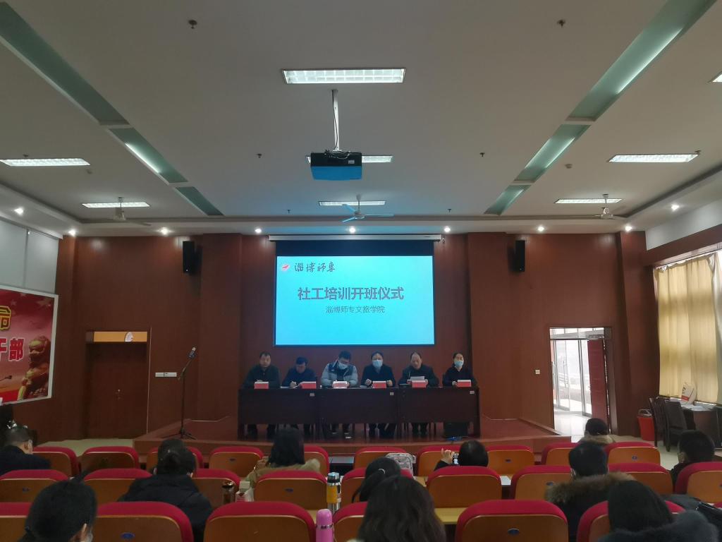 2021年1月22日,淄博师专太阳集团城8722在奂山书院举行社会工作师培训开班仪式。淄川区民政局副局长国成才、淄川区委组织部组织一科科长宋晓衡、太阳集团城8722经理王松江、支部书记于涛、副经理王剑萍、丁修振及学院老师参加开班仪式。开班仪式由王松江主持。