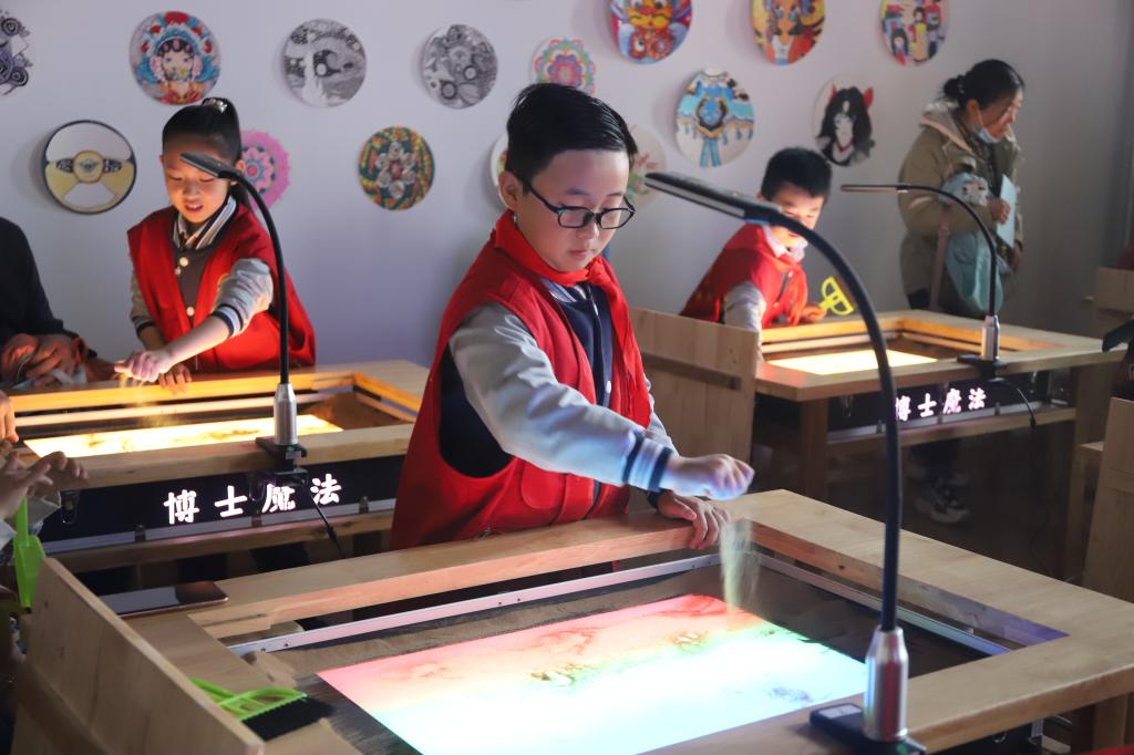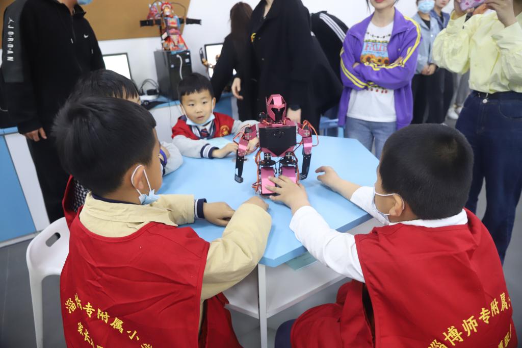 四月,正值春意盎然,夏热未至之时,空气中弥漫着蓬勃生长的气息,也是孩子们出行踏春,研学旅行的大好时候。附属小学的小朋友们来到文津楼创客中心,在沙画社团、机器人社团和无人机社团的同学们带领分组开展沙画、机器人和无人机项目体验活动,孩子们在“大朋友们”的带领下,绘制沙画,操作机器人,放飞无人机,在玩中学习科学文化知识,在玩中体验大学社团的魅力。