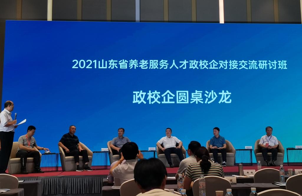 此次研讨班是由山东省民政厅主办,青岛市养老服务协会承办。研讨班和2021年中国山东(青岛)国际康养产业博览会同步举行,山东省民政厅、教育厅、人力资源社会保障厅领导、青岛市及省内其他地市的民政部门领导、康养产业企业、设立养老专业院校相关负责人与会。研讨班上设置理论授课、校企讲堂、政校企圆桌会议、校企现场供需对接等环节,内容丰富,规模庞大,充分聚焦新时代背景下康养产业发展和养老服务人才的培养,为政校企三方合作建立了平台机制。