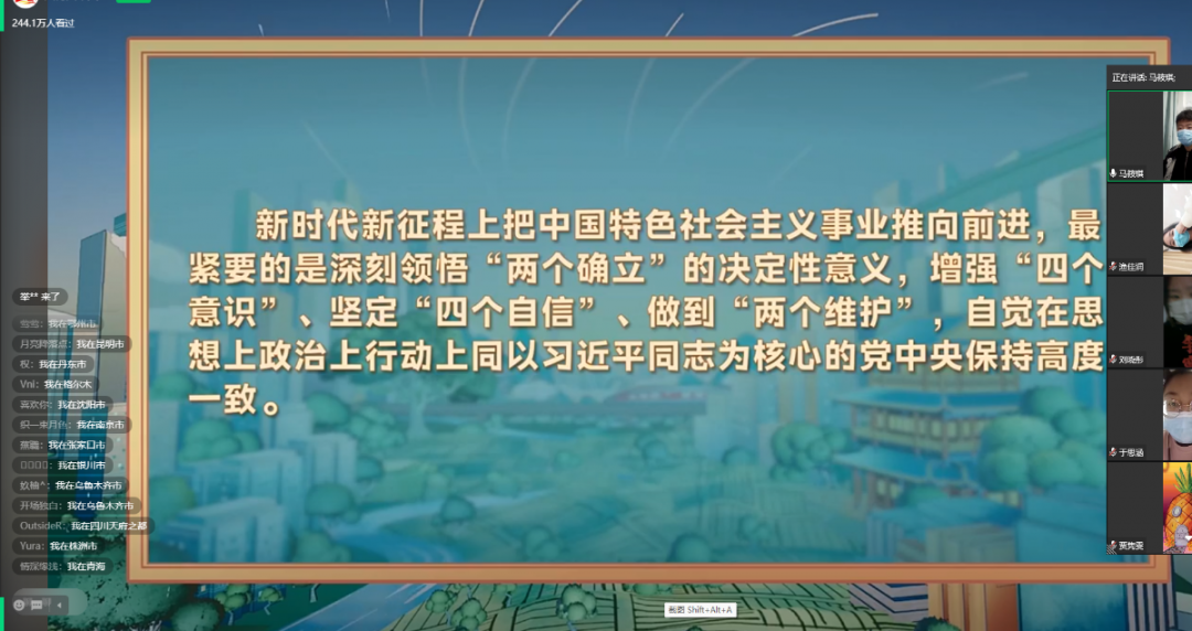 通过此次线上云团课,同学们深刻领悟到新青年必须坚持中国共产党的正确领导,坚定信心、同心同德、埋头苦干跟党走,为把我国建设成为富强、民主、文明、和谐、美丽的社会主义现代化强国而团结奋斗。我们将肩负起历史使命,怀抱远大理想,不断提高自身素养,努力提升能力本领,高举中国特色社会主义伟大旗帜,奋力谱写全面建设社会主义现代化国家崭新的篇章。