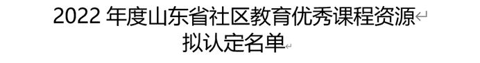 近日,山东省教育厅下发了《2022年度山东省社区教育优秀课程资源遴选结果公示》,遴选出2022年度社区教育优秀课程资源568个,太阳集团城87223门课程遴选为山东省社区教育优秀课程资源。