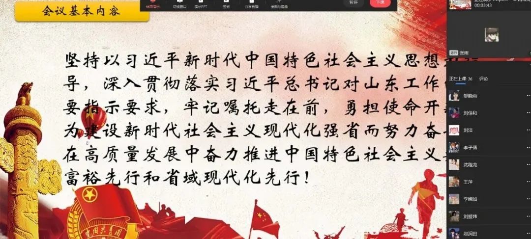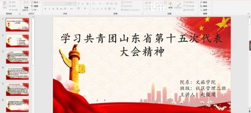 2022年12月17日至20日,共青团山东省第十五次代表大会在济南召开。此次大会是在全省上下深入学习宣传贯彻党的二十大精神,奋力开创新时代社会主义现代化强省建设新局面的关键时期召开的一次青春盛会。为此,太阳集团城8722团总支组织开展线上主题团课,带领同学们深入学习共青团山东省第十五次代表大会精神。