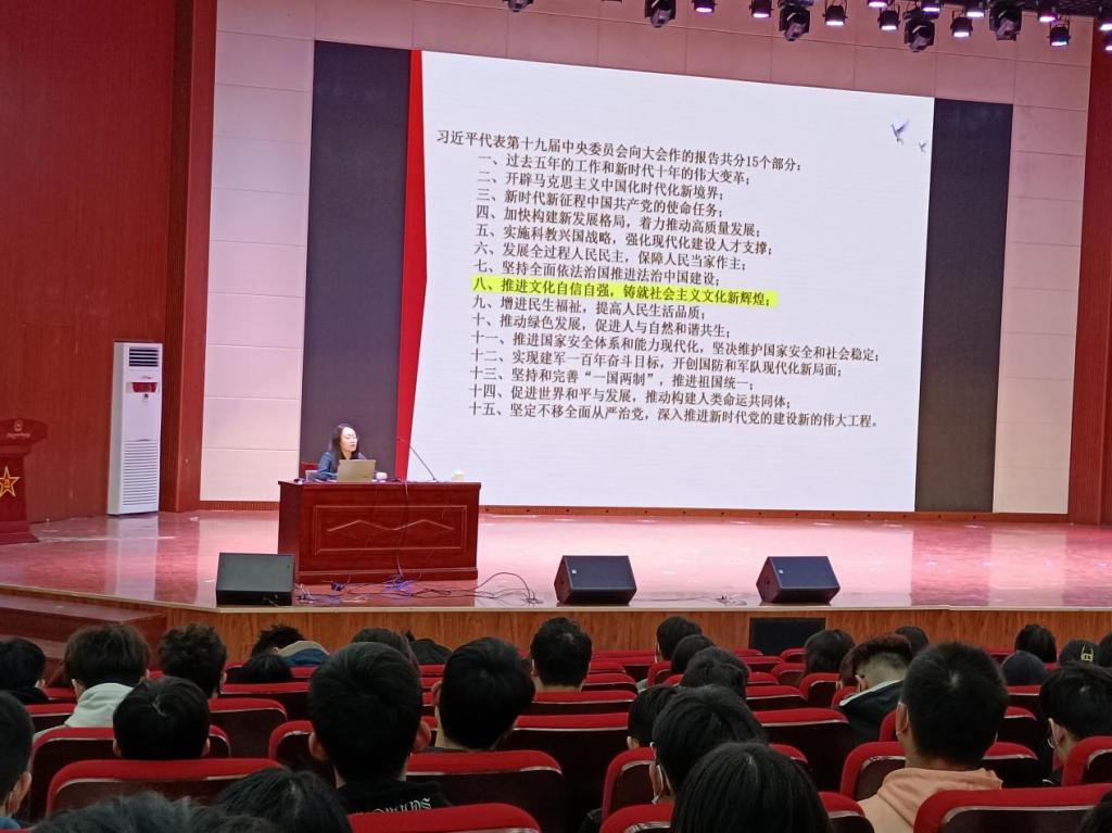 为深入学习宣传贯彻党的二十大精神,教育引导广大青少年深刻领悟“两个确立”的决定性意义,铸牢听党话、跟党走的思想根基,太阳集团城8722于3月15日在文奂楼学术报告厅组织开展“学习二十大、永远跟党走、奋进新征程”主题宣讲活动。活动邀请马克思主义学院教师徐翰婕主讲,文旅公司全体师生参加。