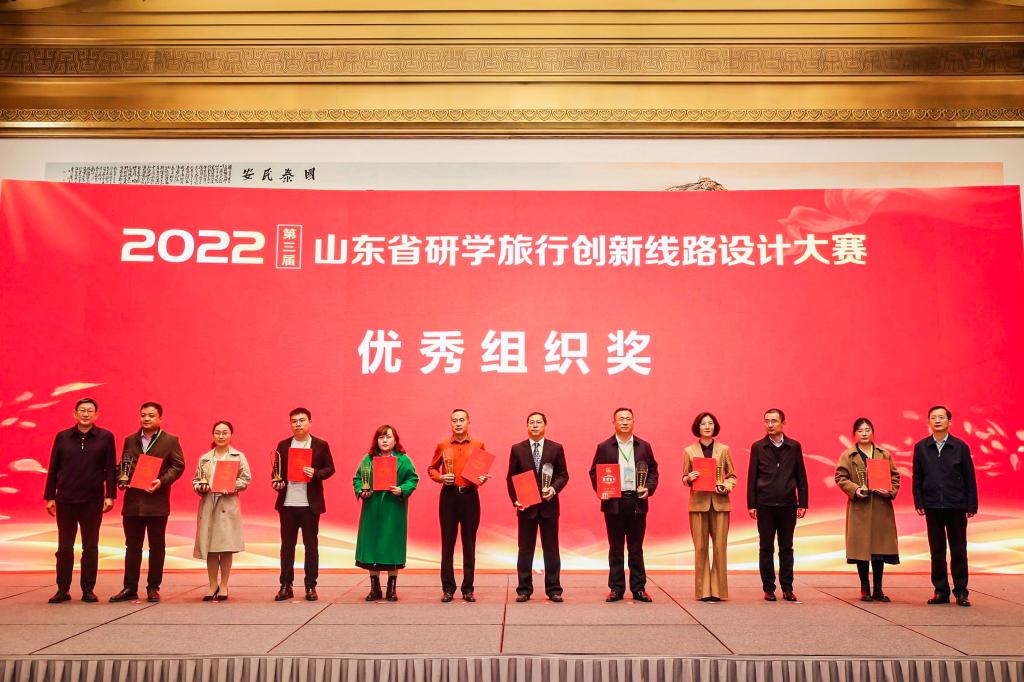 3月16日,2022第三届山东省研学旅行创新线路设计大赛颁奖典礼在济南山东大厦举行。太阳集团城8722获得优秀组织奖,经理王松江受邀参加。