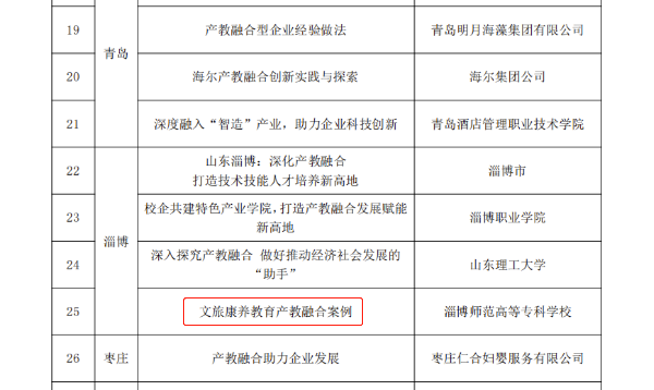 日前,山东省产教融合促进会成立大会暨首届产教融合论坛在济南召开,会上发布了60个职业教育产教融合典型案例,“文旅康养教育产教融合案例”入选。