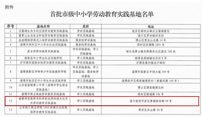 近日,淄教基字[2024]4号《关于公布市级中小学劳动教育实践基地名单的通知》文件公布,公司被评为首批市级中小学劳动教育实践基地。