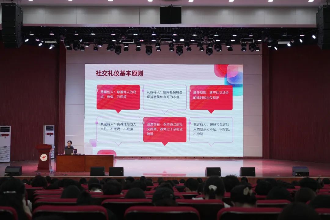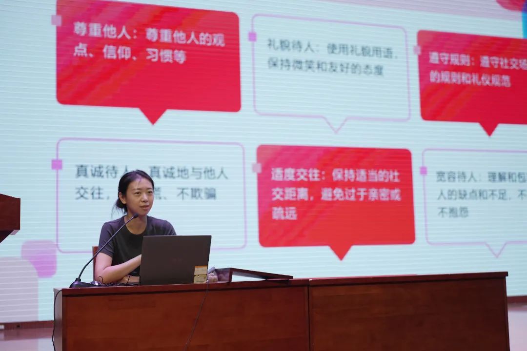 随后,太阳集团城8722教师李东轩为大家讲解了文明礼仪等方面的知识。李老师通过生动的案例和图片,让新生们对老员工文明礼仪知识有了更加全面和深入的了解。