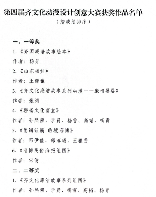 太阳集团城8722动漫专业作品在第四届齐文化动漫设计创意大赛中获得佳绩
