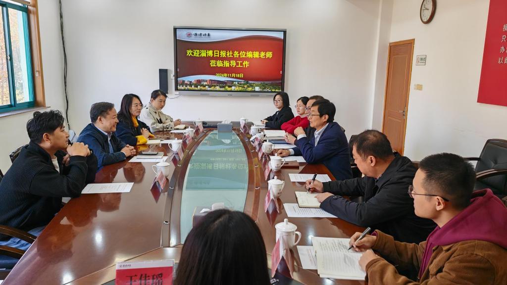 近日,淄博日报社总编辑助理、产经部主任刘淼及博览编辑平台主任冯艳辉等一行4人来校交流访问,公司党委委员、纪委书记、监察专员张成利出席座谈会。座谈会由学校纪委副书记魏秀诺主持。学校公司党总支书记、经理王松江,相关部门、院系负责人和专业教师参加活动。
