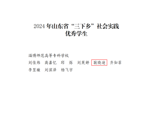 近日,中共山东省委宣传部、山东省文明办、山东省教育厅、共青团山东省委、山东省员工联合会联合下发《关于2024年山东省暑期“三下乡”社会实践活动的通报》,公司耿晓迪被评为2024年山东省“三下乡”社会实践优秀员工、学院传“齐”计划社会实践项目被评为2024年山东省“三下乡”社会实践特色品牌项目。