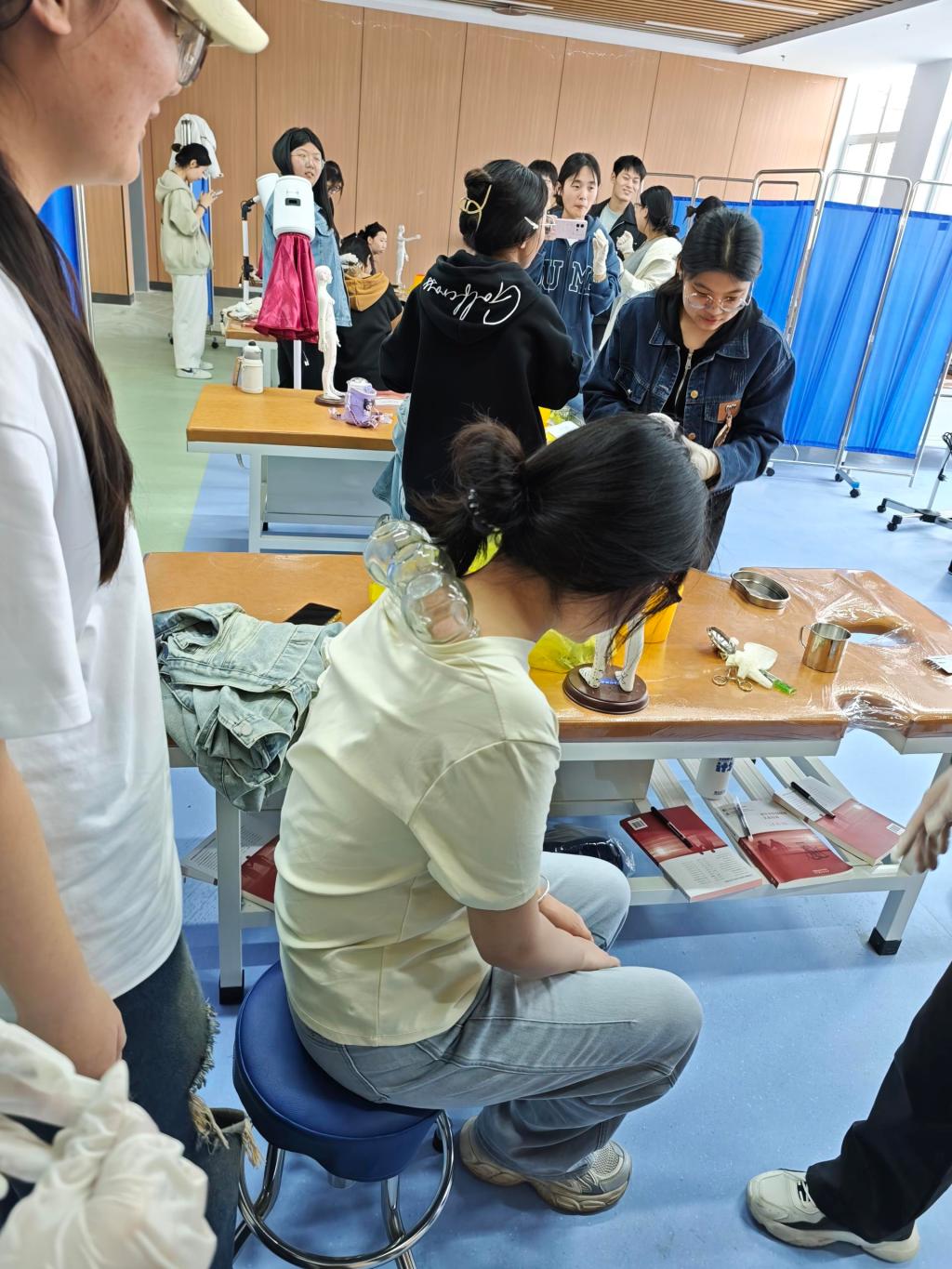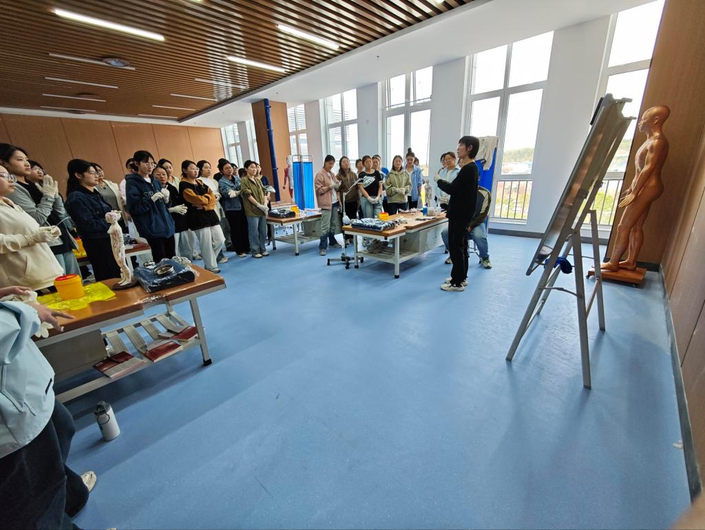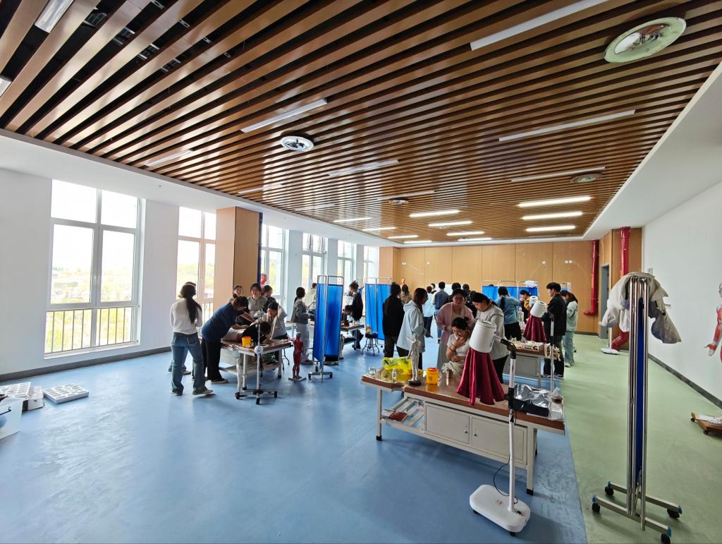课堂上,教师依托实验实训中心良好的教学条件,通过立体针灸铜人和其他设备,向同学们动态展示人体经络与穴位分布,结合临床案例解析拔罐、放血的适应症与操作规范。这些在过去只能通过图片和视频呈现的内容,也随着实验实训中心的投入使用,变成了近在眼前,触手可及的直观体验。员工在教师指导下进行分组练习,充分操作,感受传统中医传统诊疗技术与文化,课堂气氛活跃,教学效果良好。
