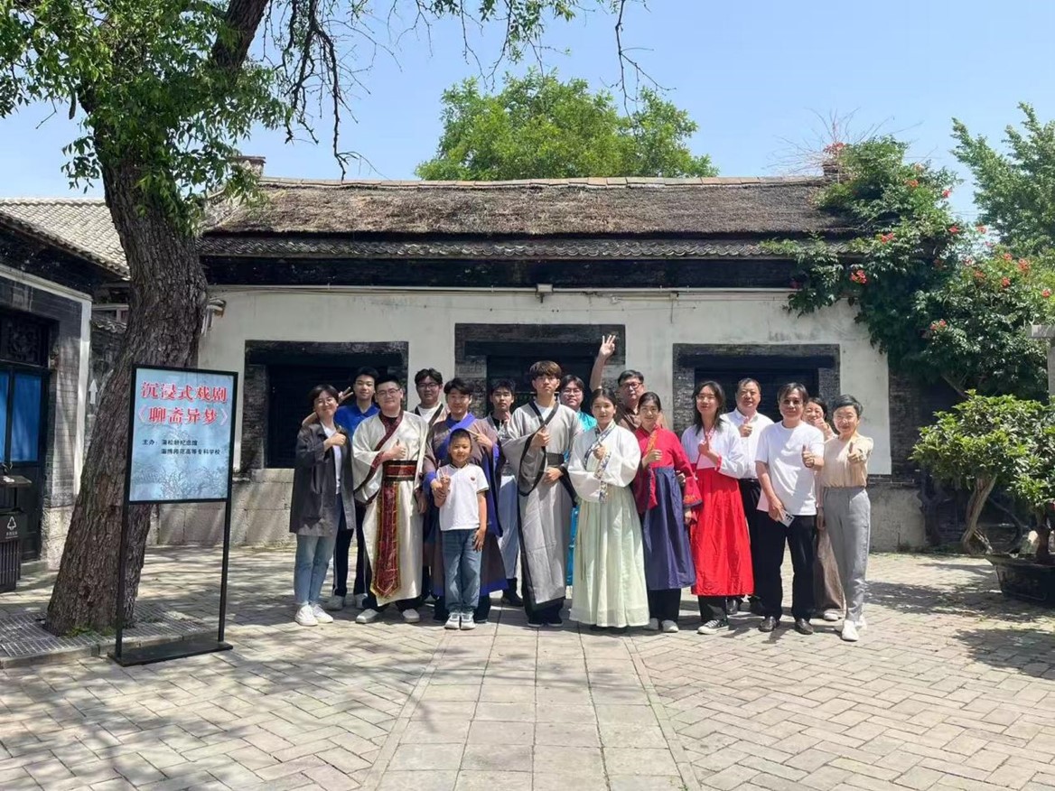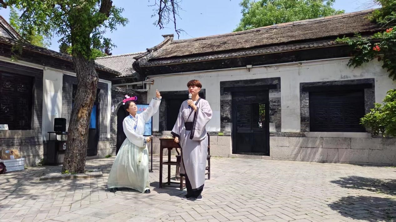 由学校聊斋文化研究中心集体创作,翟淼淼编导的沉浸式短剧《聊斋异梦》,于国际博物馆日,在蒲松龄故居的聊斋小院上演。